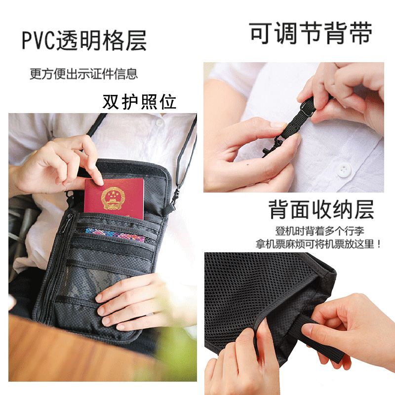 Traveling abroad close-fitting anti-theft passport bag waterproof document bag ticket storage bag hanging neck Messenger RFID wallet