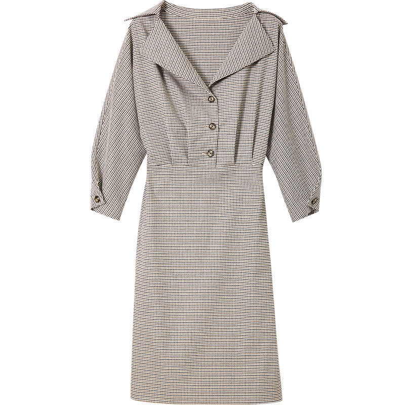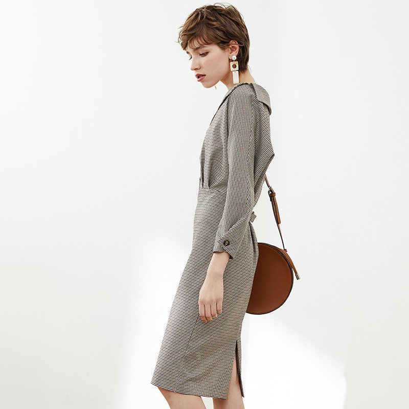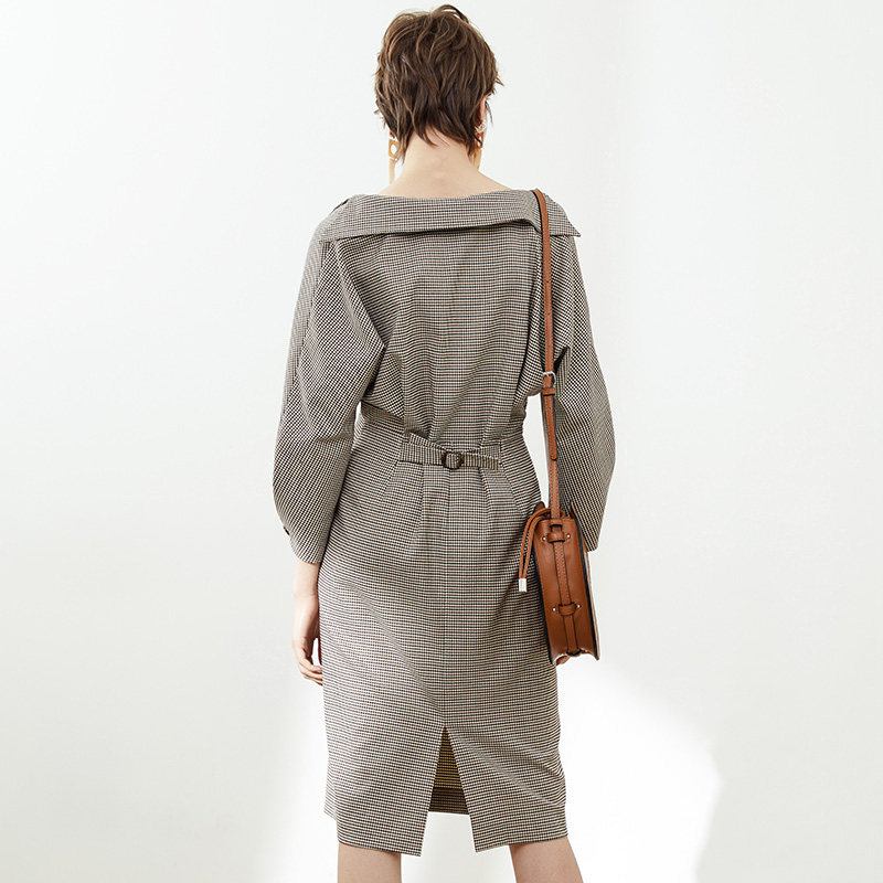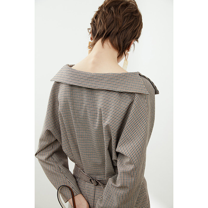 O'Kelly French vintage dress ~ one shoulder long sleeve plaid dress 2021 new high waist skirt