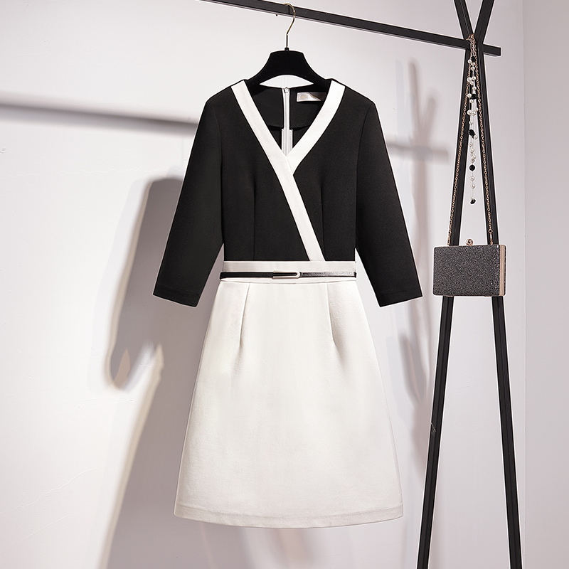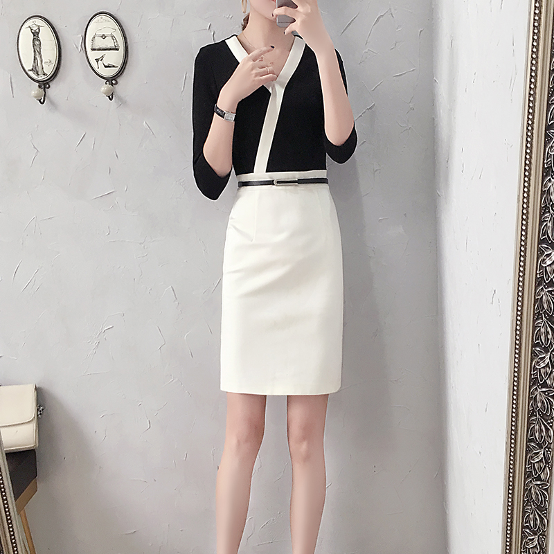 2022 Spring new female pro Ocean dress Waist Display Slim Temperament Name Coloring and Splicing Bag Hip a word dress