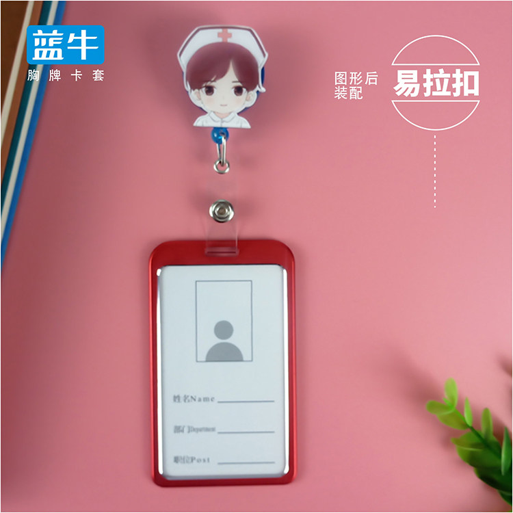 Blue Bull Hospital Nurse Chest Card Korean Version Cartoon Easy Pull Extension Buckle Custom Aluminum Alloy Sleeve Work Certificate Chest Card