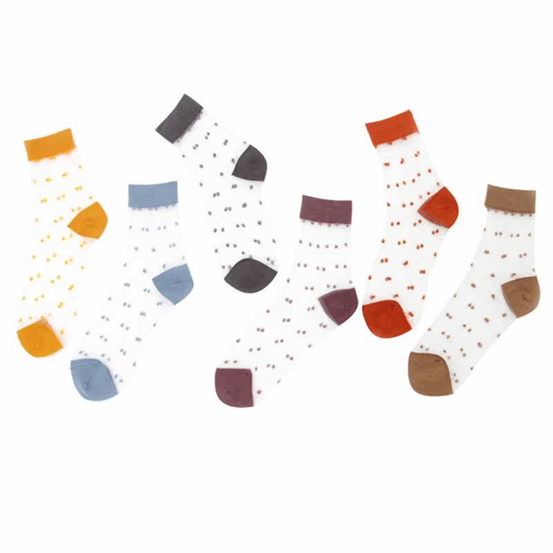 Spring and summer wave point socks female card silk Japanese transparent black and white blue dot color retro breathable mid-tube sandals stockings