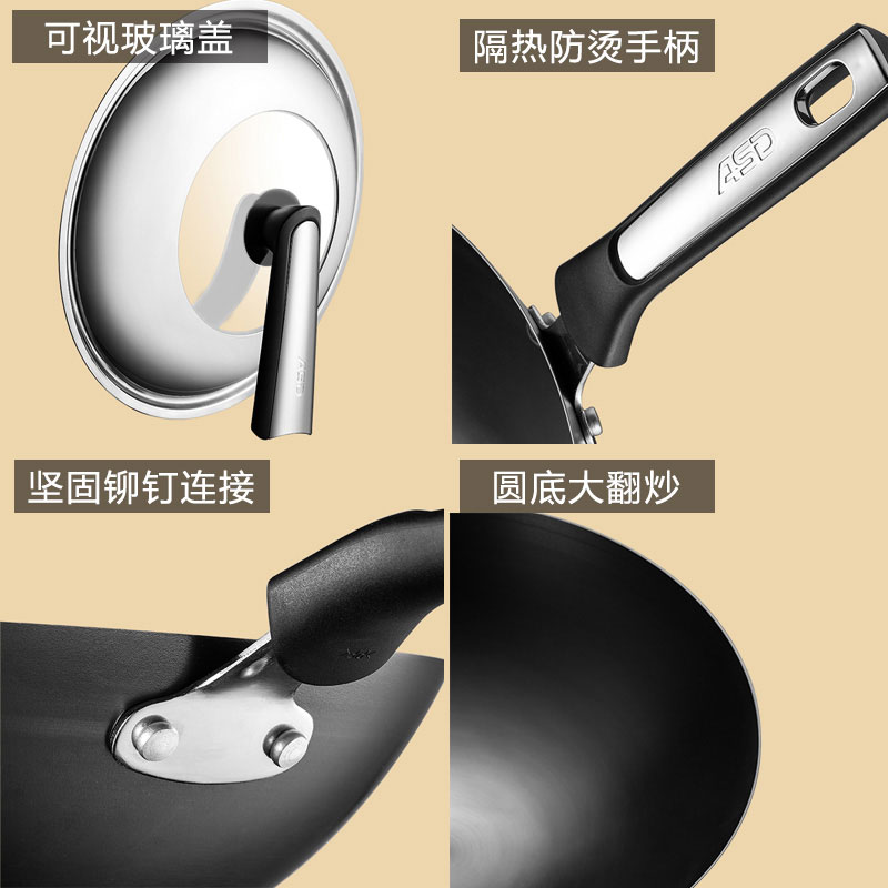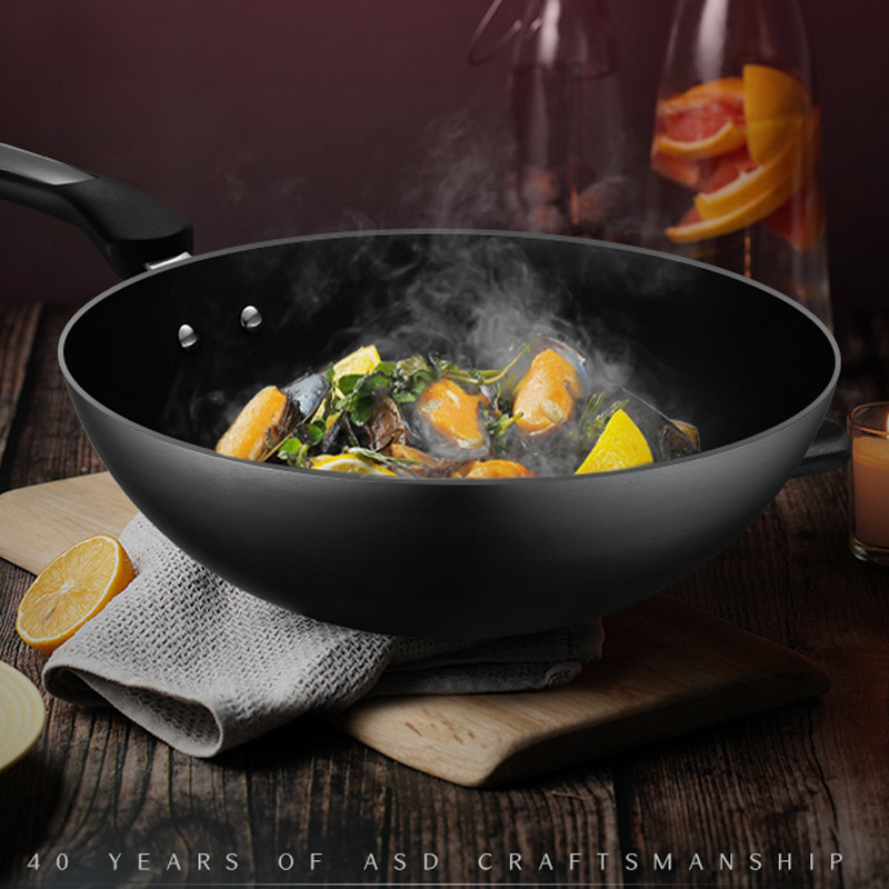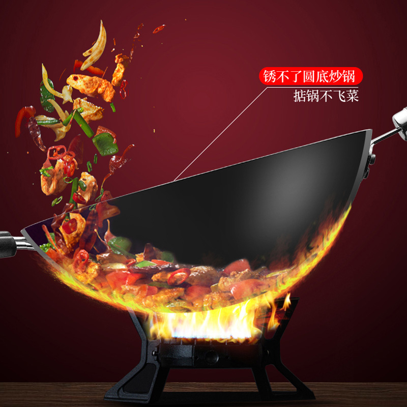 Love Shida Frying Pan Without Coating Iron Pan Household Round Bottom Big Flip Fry not easy to rust gas stove suitable for bursting frying pan