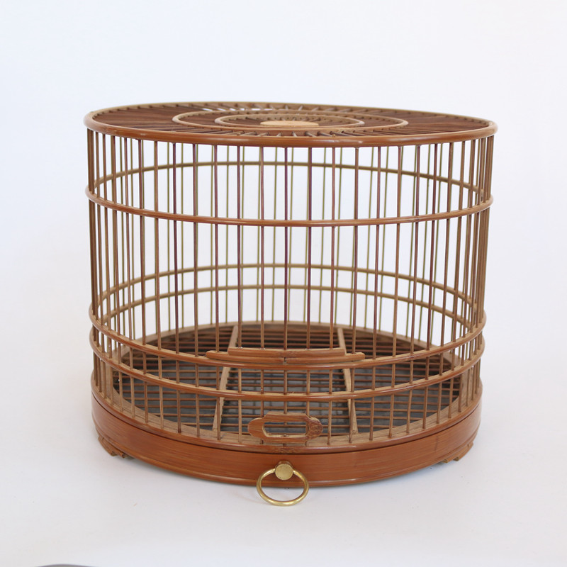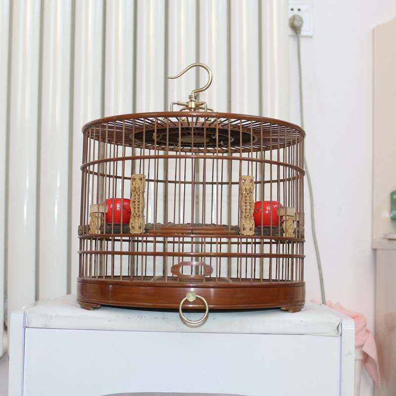 Old bamboo willow Orioles bird leather leather material polished drawer bird cage boutique cage embroidered yellow nestle hibiscus jade bird Wenbird