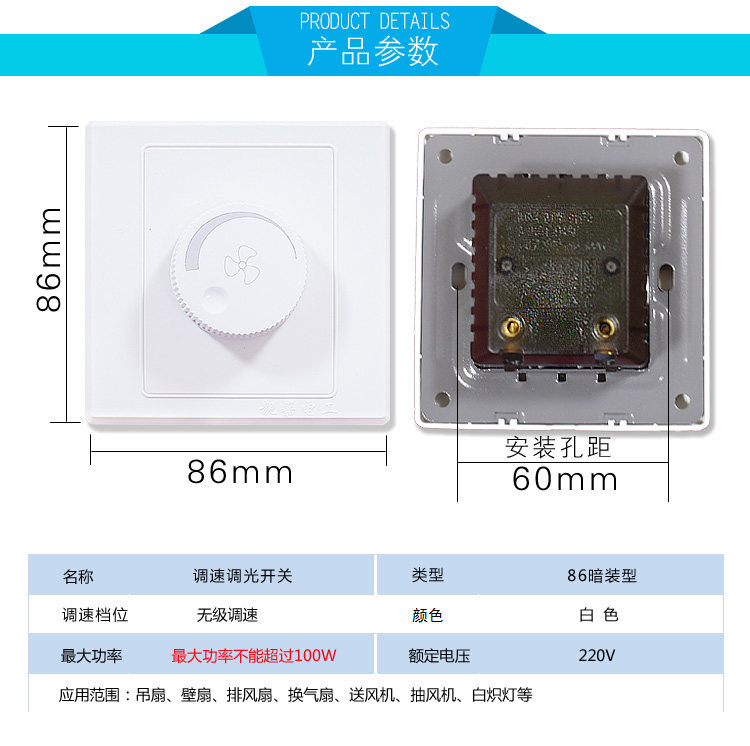 Ceiling fan speed controller Speed and speed variable speed switch Universal five-speed controller Top fan surface mounted electric fan speed control switch