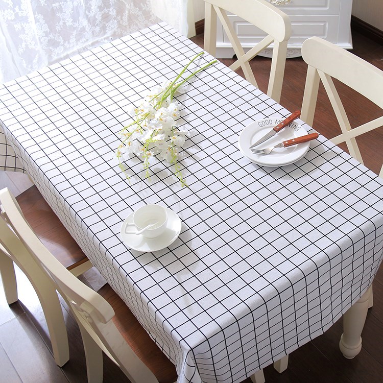 Brief Joins Art Nordic Fresh Square Grid Waterproof Tea Table Cloth Art Fields Garden Cotton Linen Rectangular Table Cloth