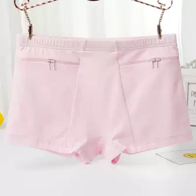 Middle-aged and elderly solid-color cotton four-corner safety pants double zipper large pocket anti-theft underwear anti-theft flat-angle women's underwear
