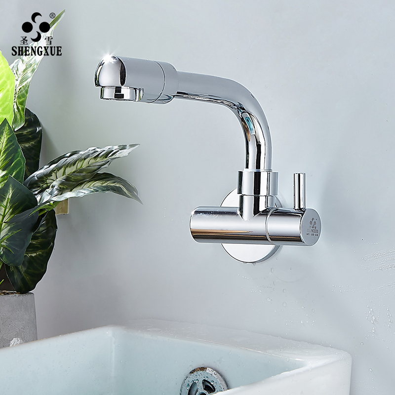 Lengthened into wall type single cold tap balcony laundry mop pool tap anti-splash head long mouth rotatable household