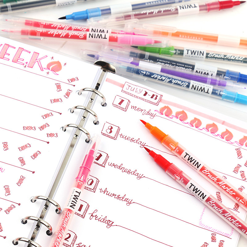 Dot stone stationery manufacturers double-headed water-based marker pen 36 color set Painting art hand account watercolor pen Painting poster architecture hand-drawn animation gift pen hook line pen DS-2001 single