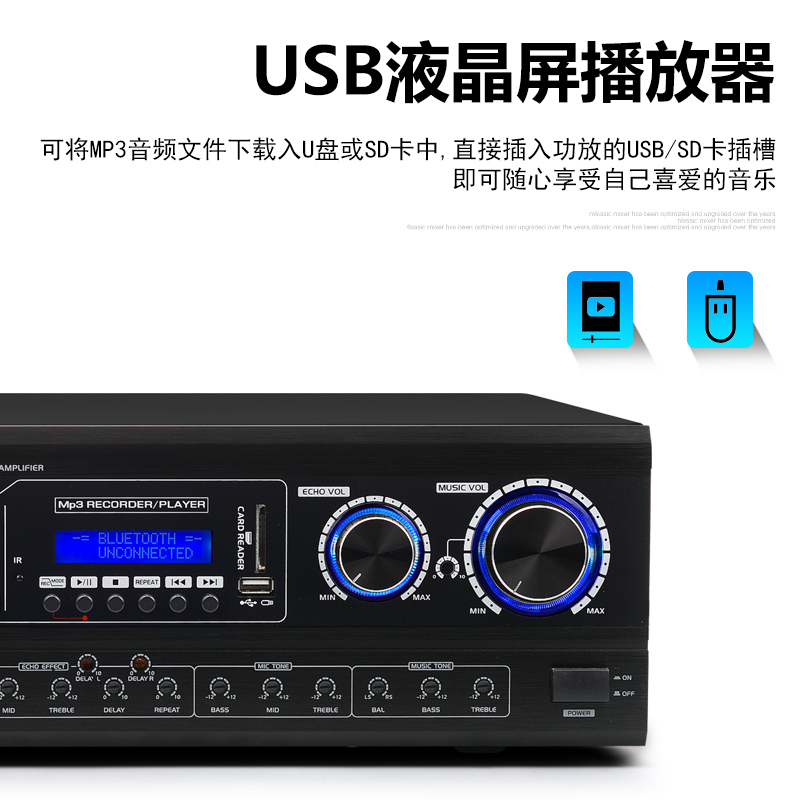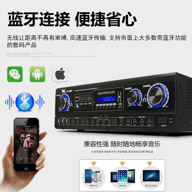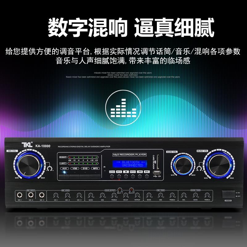 TKL pre-stage amplifier Home high-power professional K song one-key anti-howling suppressor Automatic Bluetooth KTV home karaoke with Bluetooth wireless microphone Microphone audio bass
