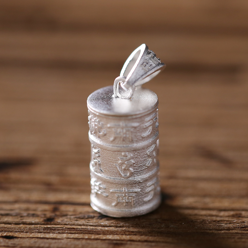 Scriptus Pure Silver Lenght Mantra Gaga Box Six Words Real Words Pendant Cylinder Fetal Fur Male And Female Couple Pendant