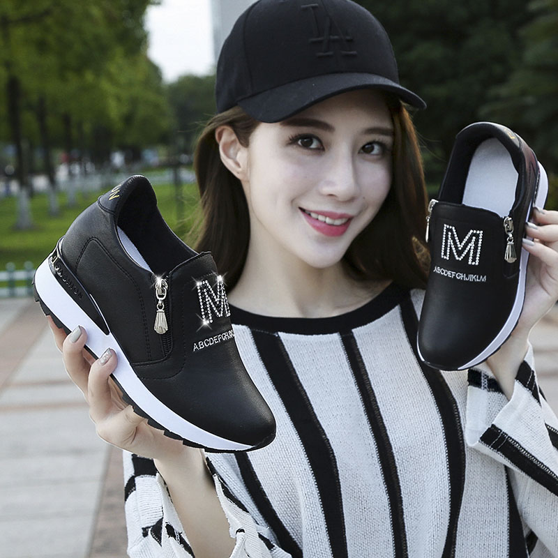 Inside heightening small white shoes women 2022 spring models new 100 hitch Han version students thick bottom net red harbor wind casual white shoes