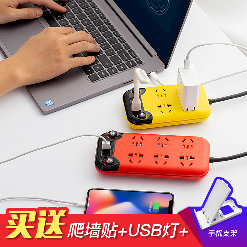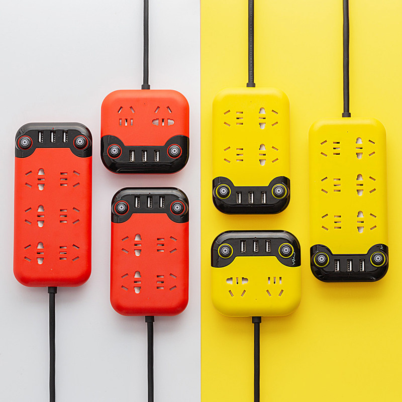 Personalized plug-in socket creative multi-function cute extension cable drag wiring board plug board with cable usb household power supply