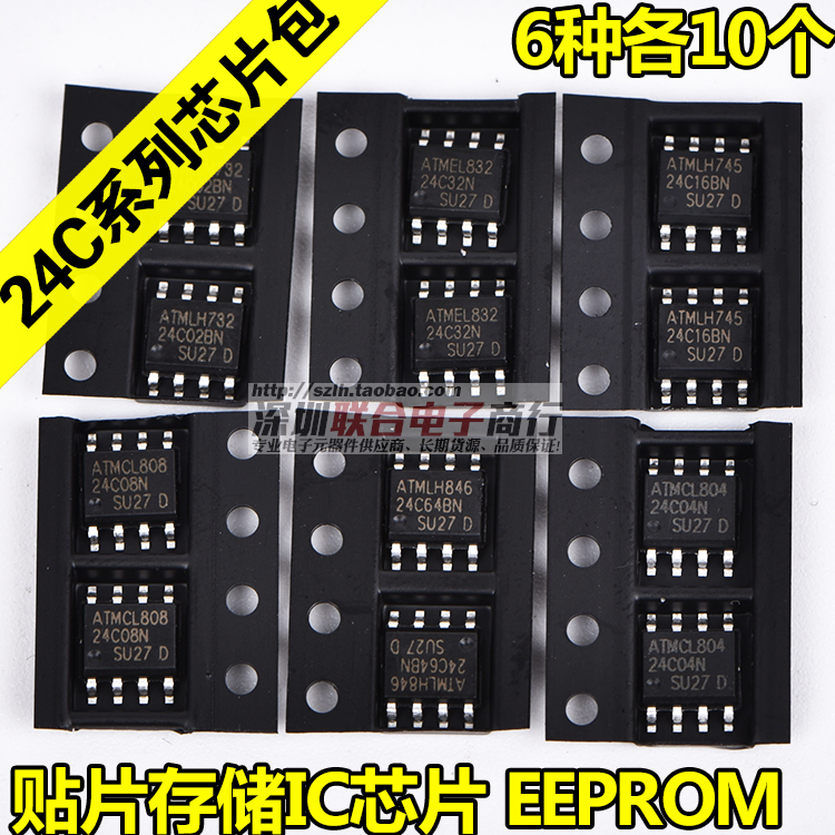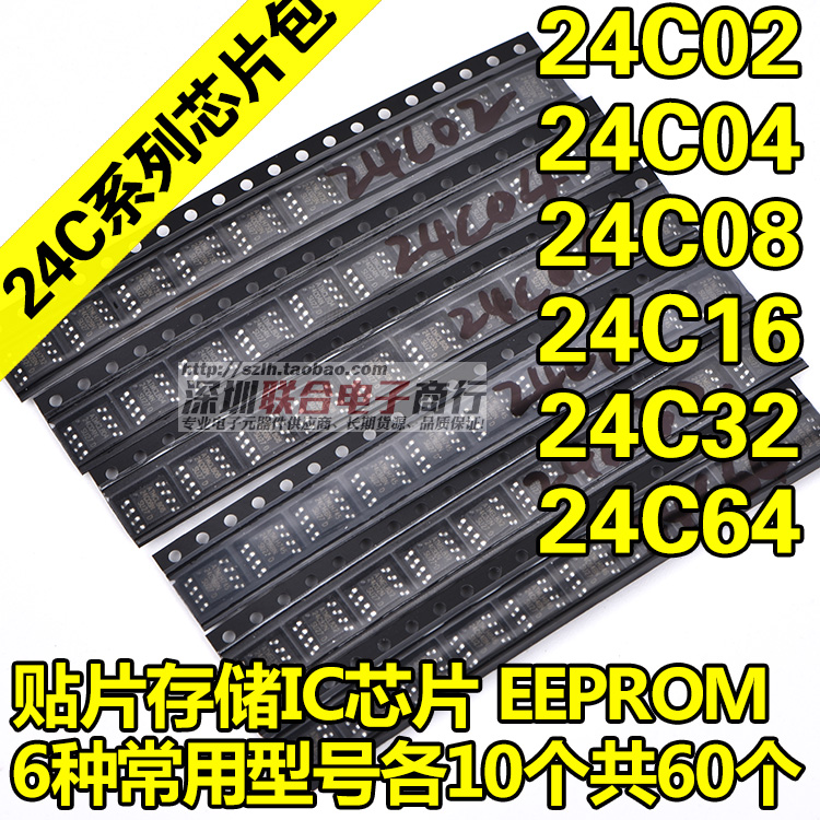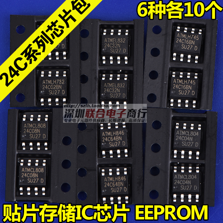 Storage IC Chip package AT24C02 24C04 24C08 24C16 24C32 24C64 Total 60 pcs