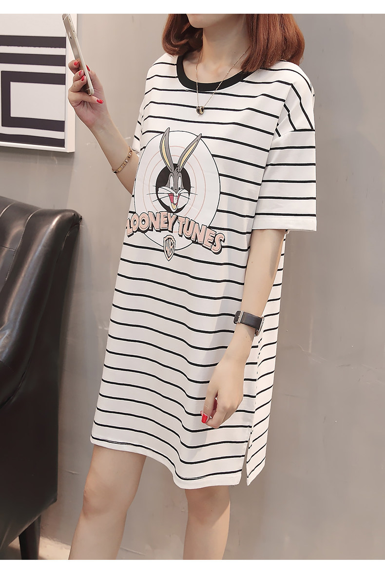Pregnant women summer dress 2019 summer new cotton short sleeve striped t - shirt Korean edition loose middle - long dress