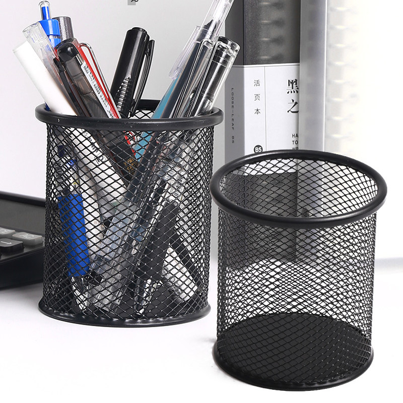 Metal Pen Holder Black Simple Fashion Student Desk Stationery Office Desktop Storage Ornament Multifunctional Pen Holder