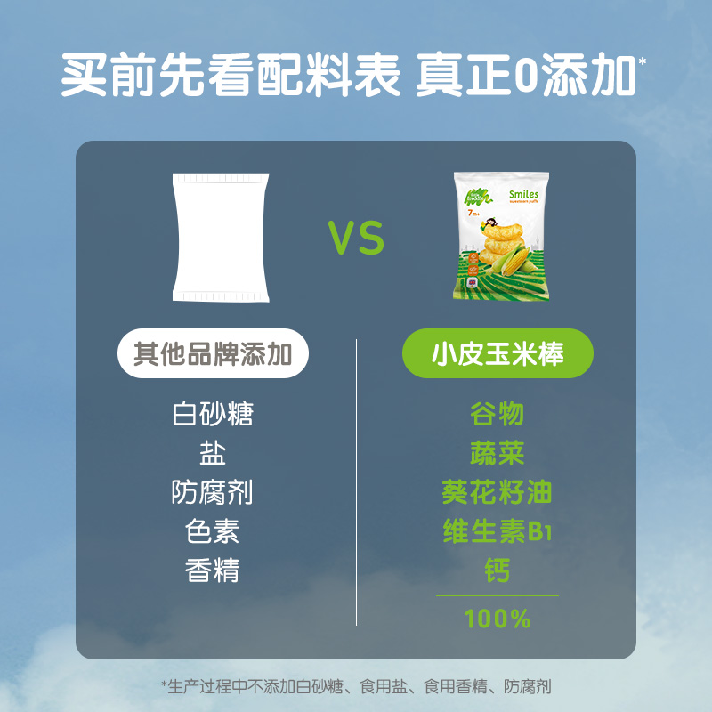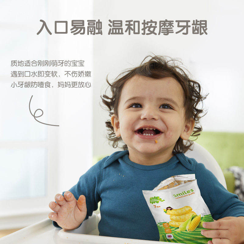 Xiaopi Europe imported sweet corn cob baby snack molar finger puff strip 20g bag