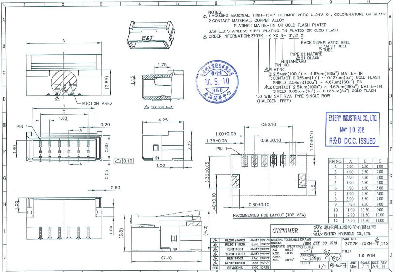 Entery Connector Light bar backlight socket 3707K-Q06N-01R 1 0 6P horizontal patch interface