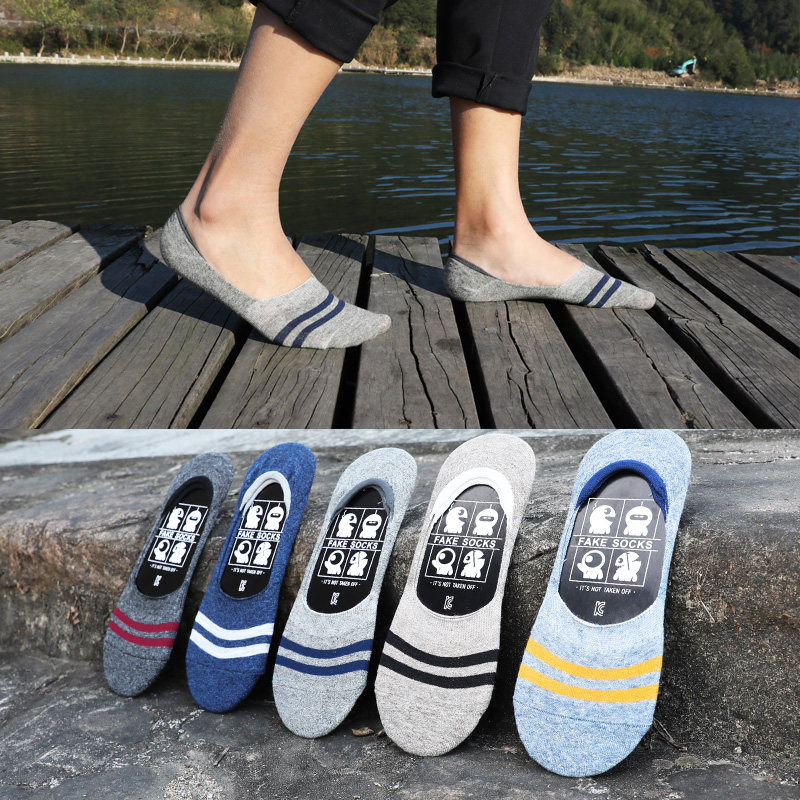 Socks men's boat socks cotton summer thin invisible socks Full silicone non-slip sports sweat absorption deodorant Doudou socks tide