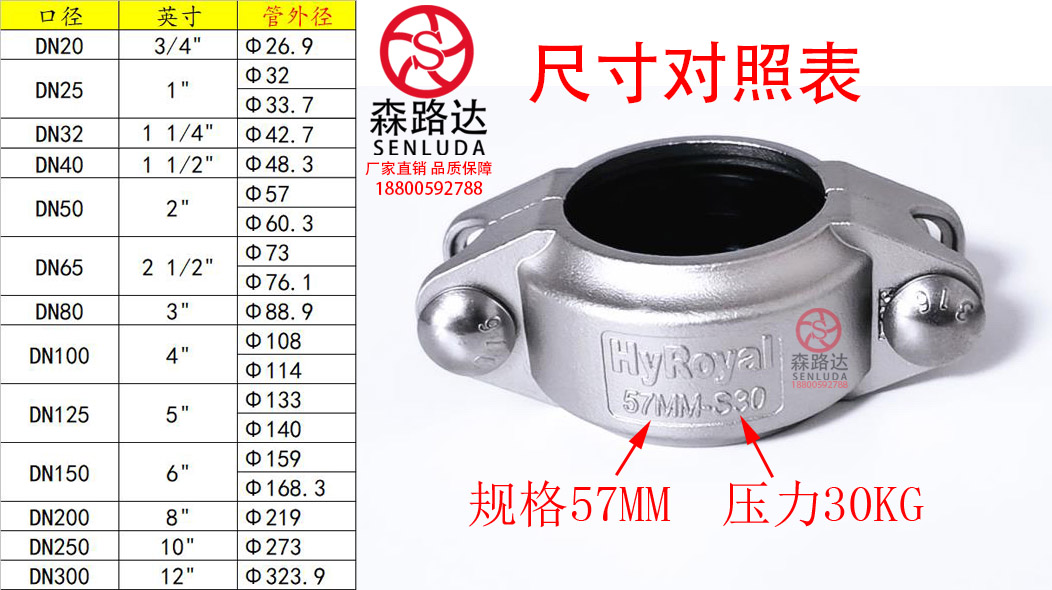 30kg stainless steel 304 copy forest clamp DN20-300 membrane shell corbelin groove pipe hoop hoop clamp