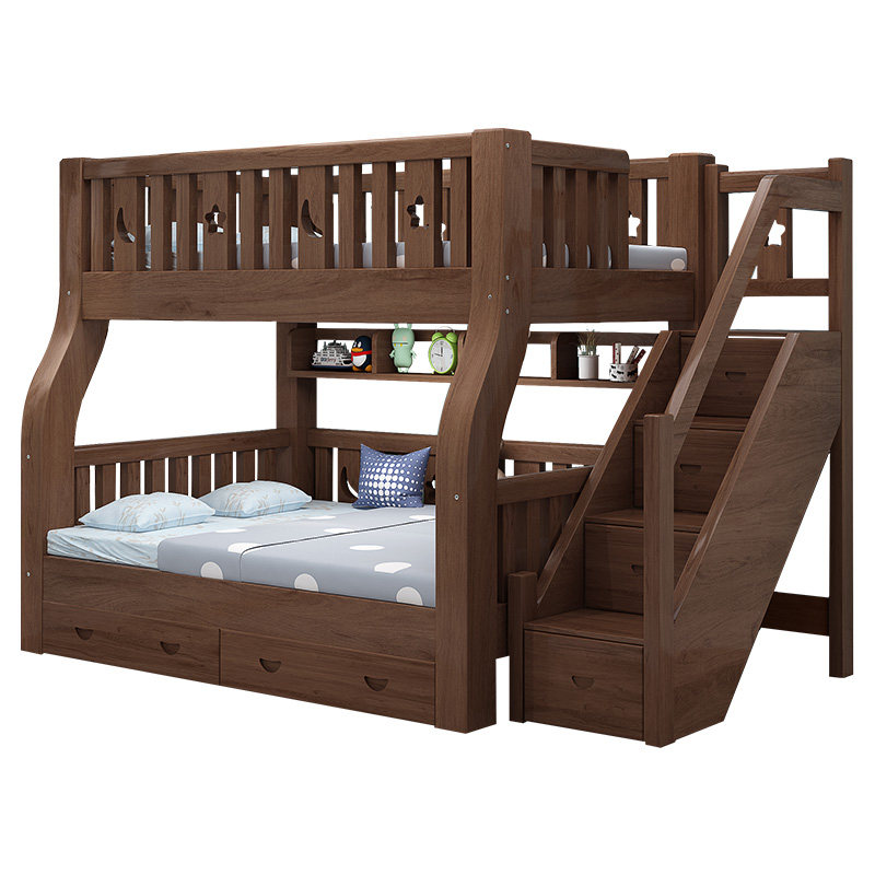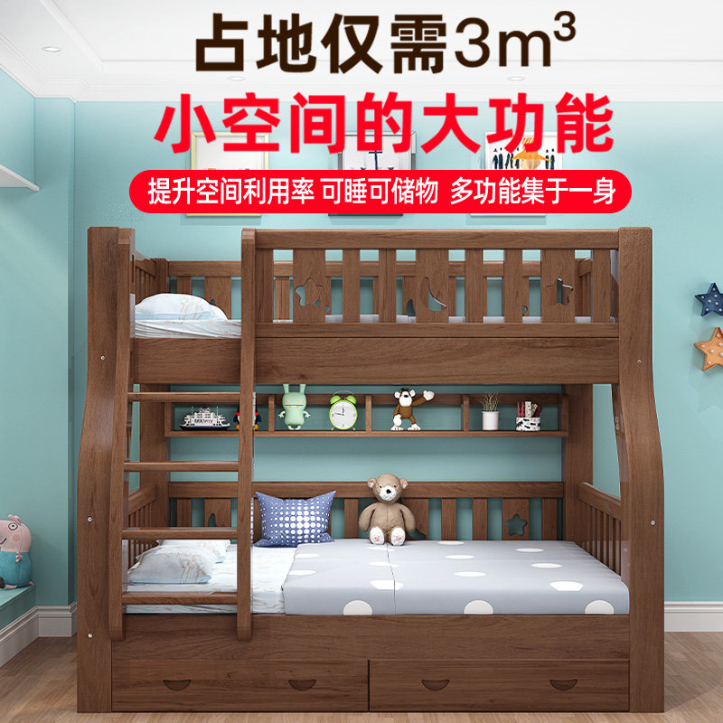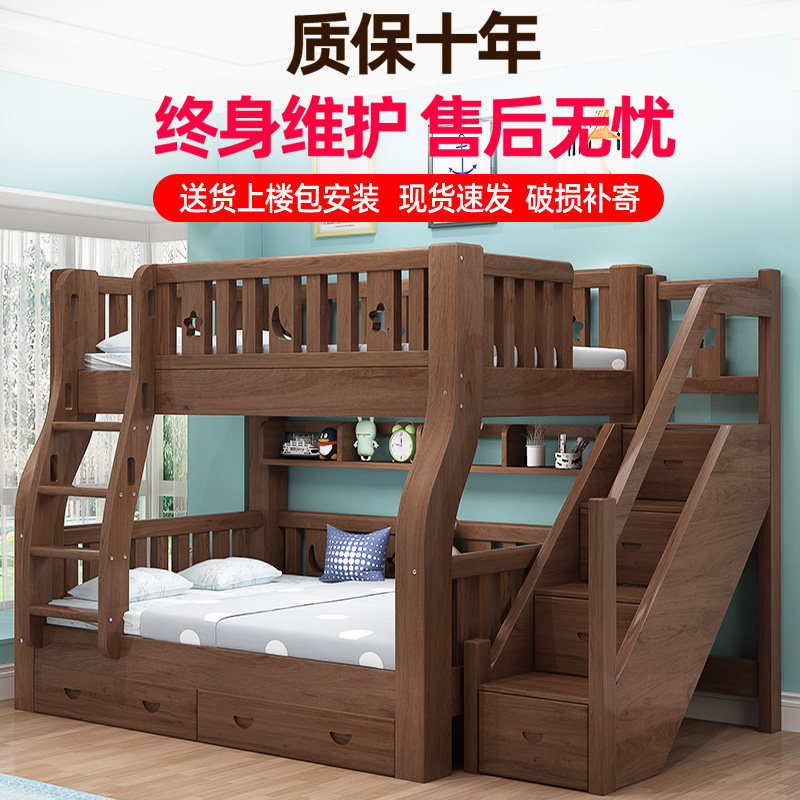 Bunk bed bunk bed solid wood mother bed bunk wooden bed high and low bed small apartment walnut two-layer children's bed
