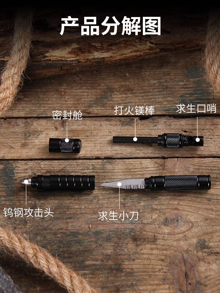 Outdoor Fight Fire Stone Field Magnesium Sticks Baton Fire Rod Multifunction Tactical Pen Tungsten Steel Anti-Body Weapons Wilderness Courter Equipment