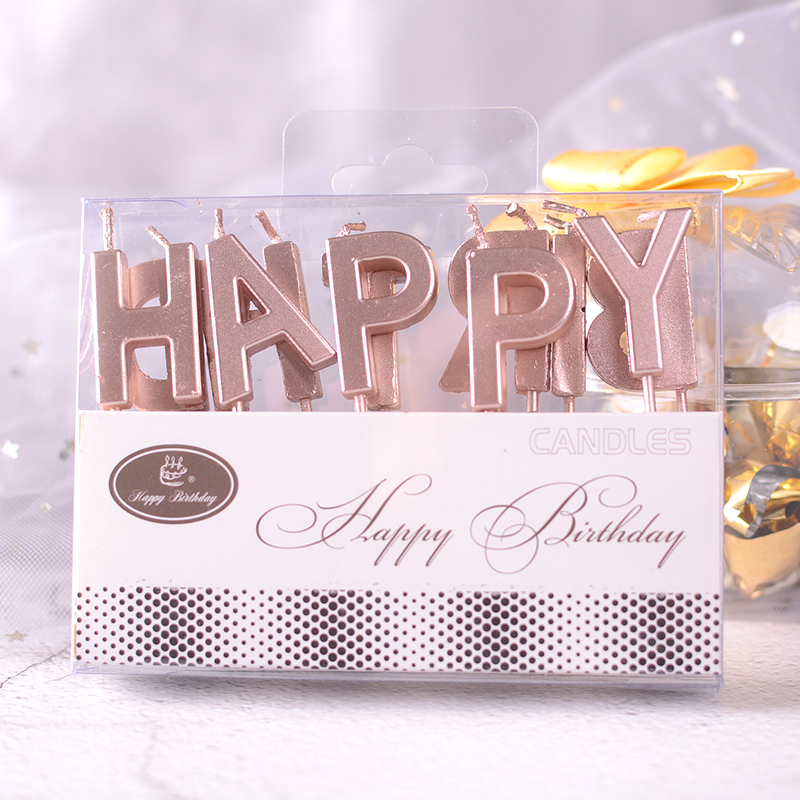 Metal birthday letter candle happy birthday gold and silver rose gold birthday candle baking supplies