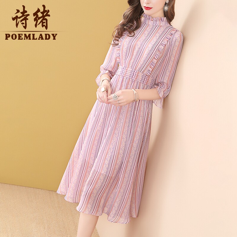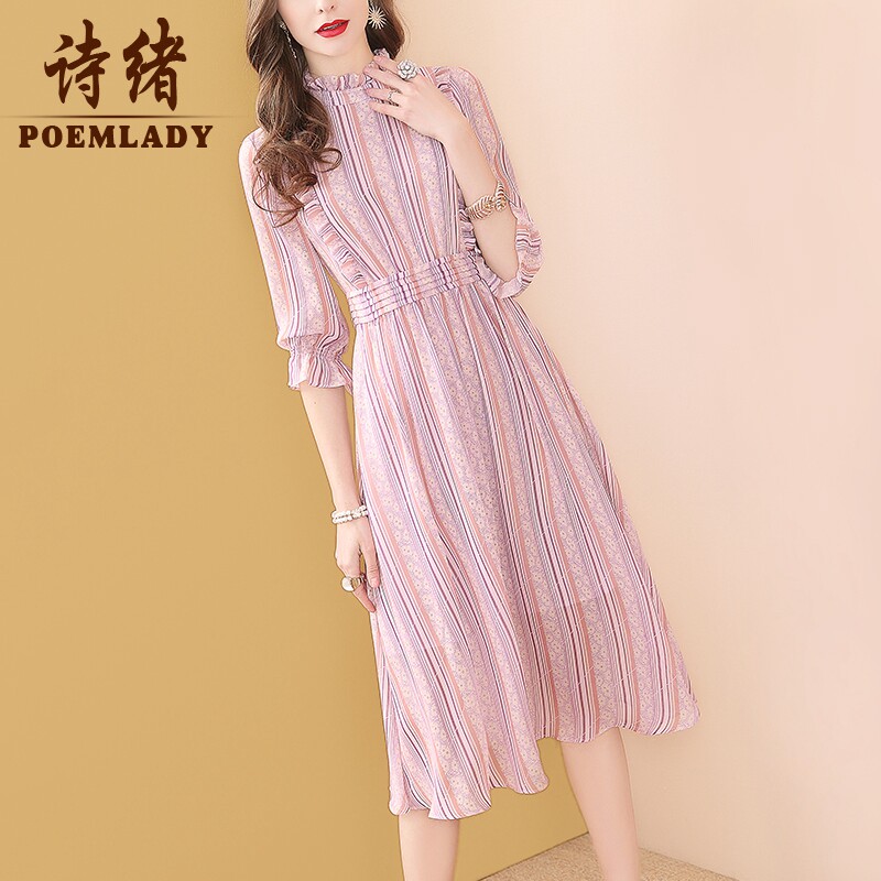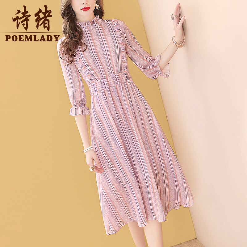 Shixu spring dress pink chiffon dress women's spring 2022 new 8686 (new link 611117647426)