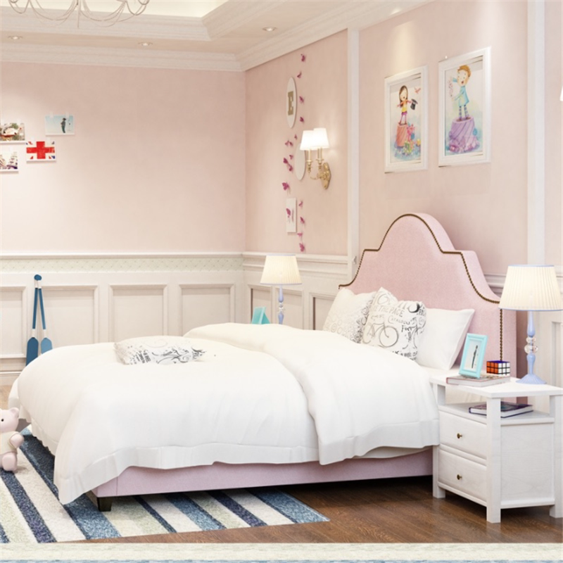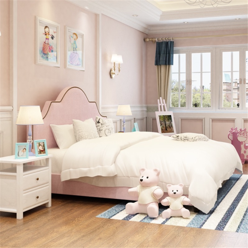 American fabric bed Master bedroom soft bag Double rivet Classical Villa French Mediterranean Pink Princess installation