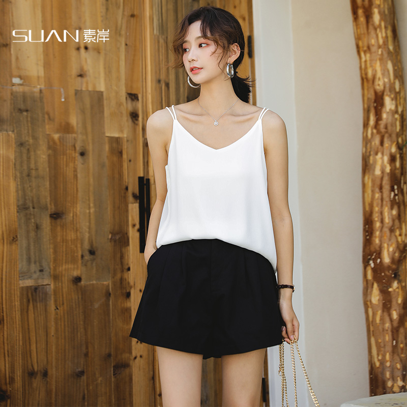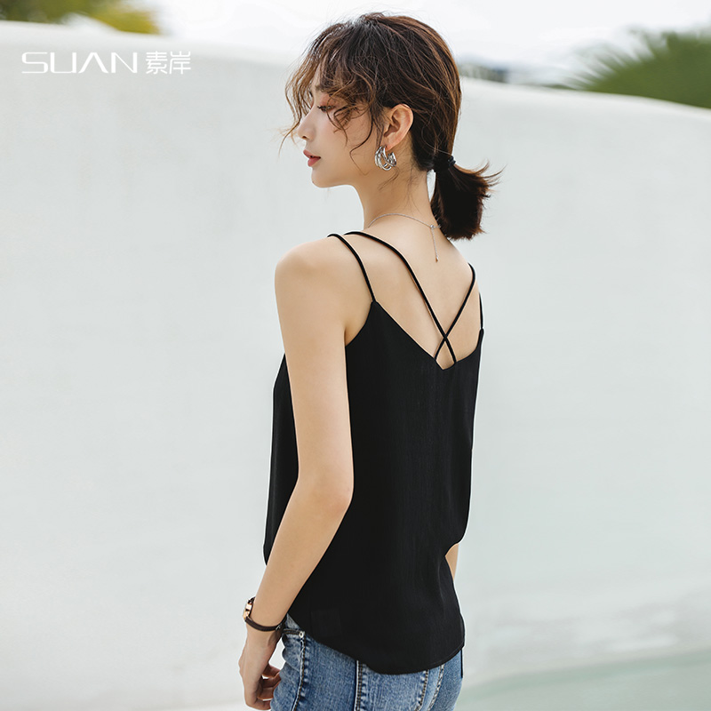 Harnesses vest female summer 2021 new Korean version V collar outside wearing double slats bottom inner lap loose and thin snowspun blouses