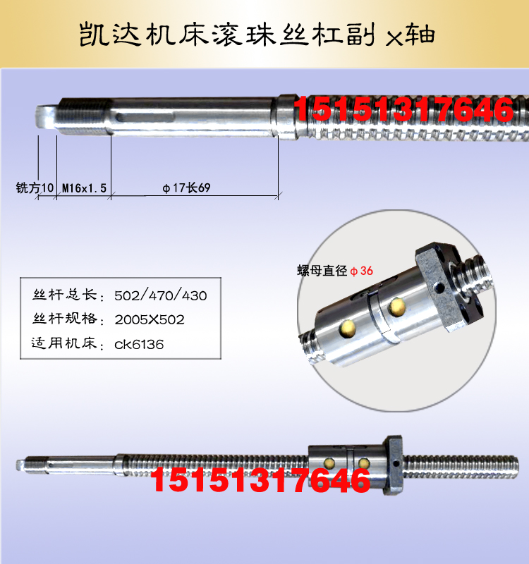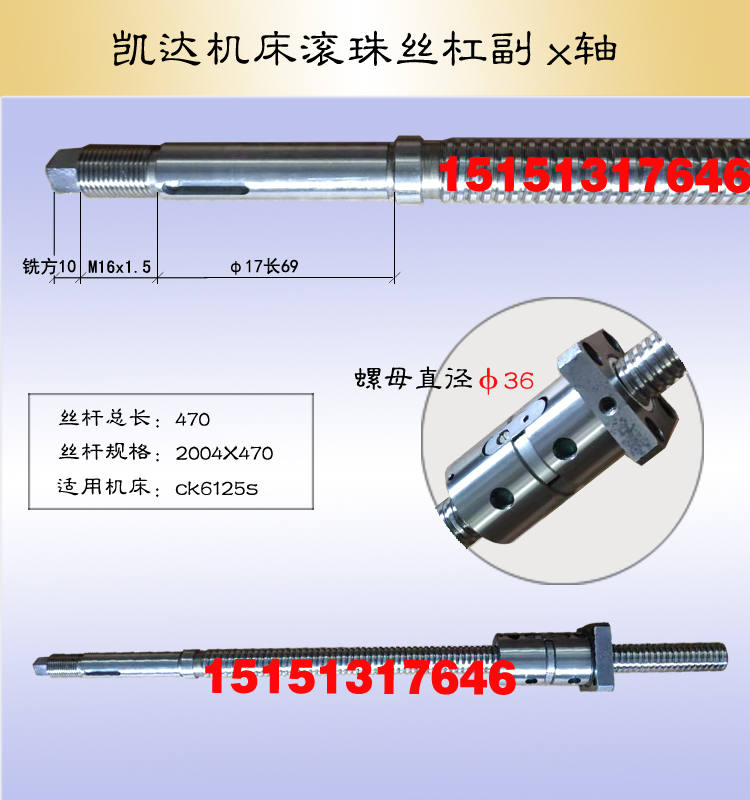 Kaida bed screw ck6125 6130 6132 6136 CNC bed center tow plate x-axis ball screw