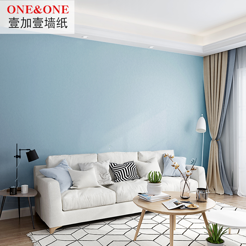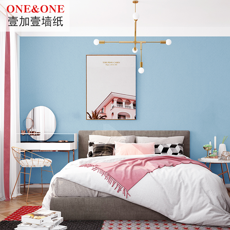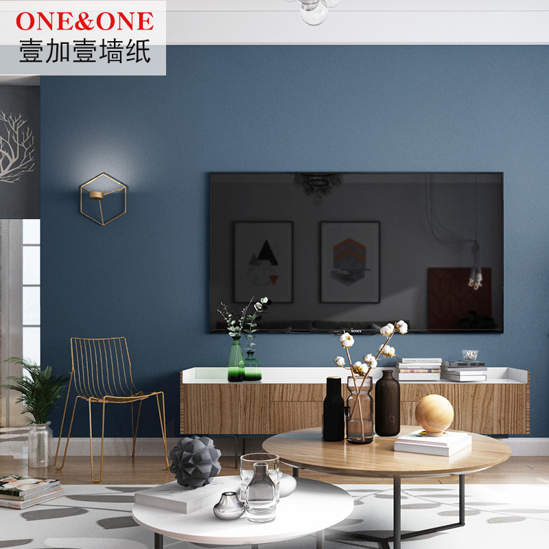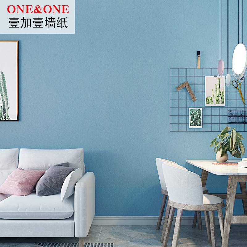 Modern simple Nordic light blue wallpaper Bedroom study children's room solid color thickened dark blue wallpaper background wall
