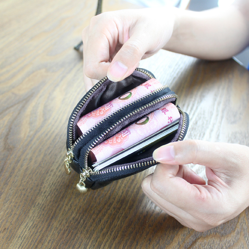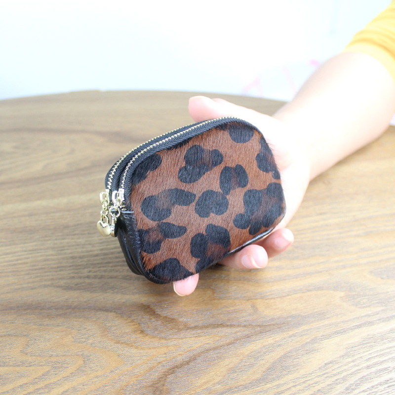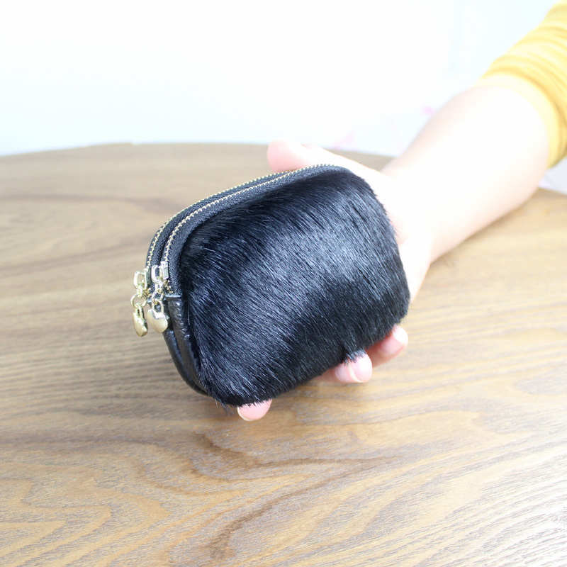 Europe and the United States new horse hair wallet ladies zipper bag leather mini coin purse BAO WEN soft leather coin bag card bag