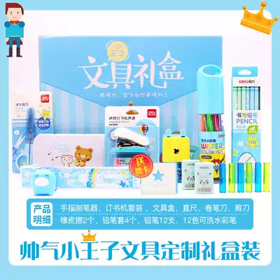 Del stationery gift box set student school supplies opening gift package kindergarten Primary School students first grade birthday gift gift 6 years old 7 years old pencil eraser stationery box combination
