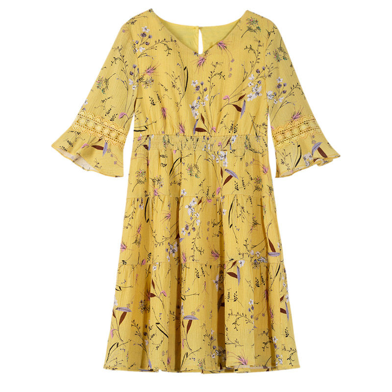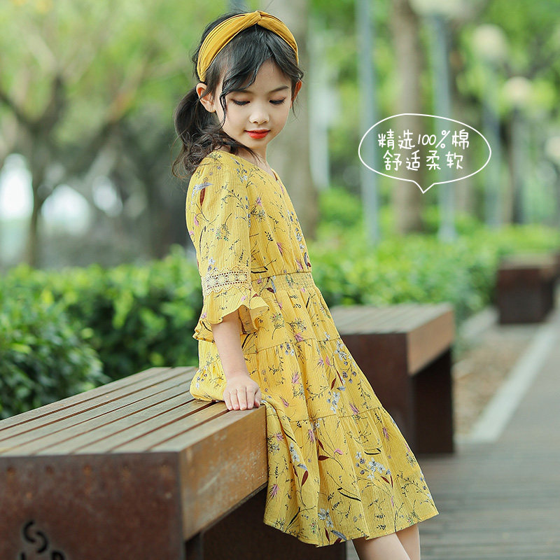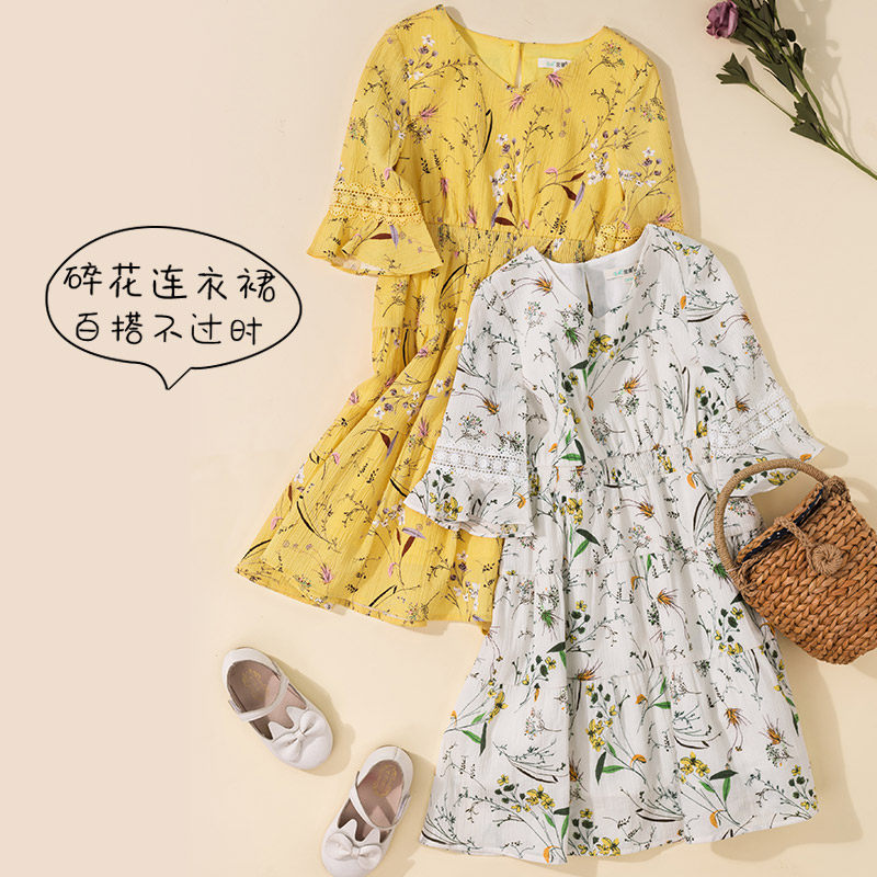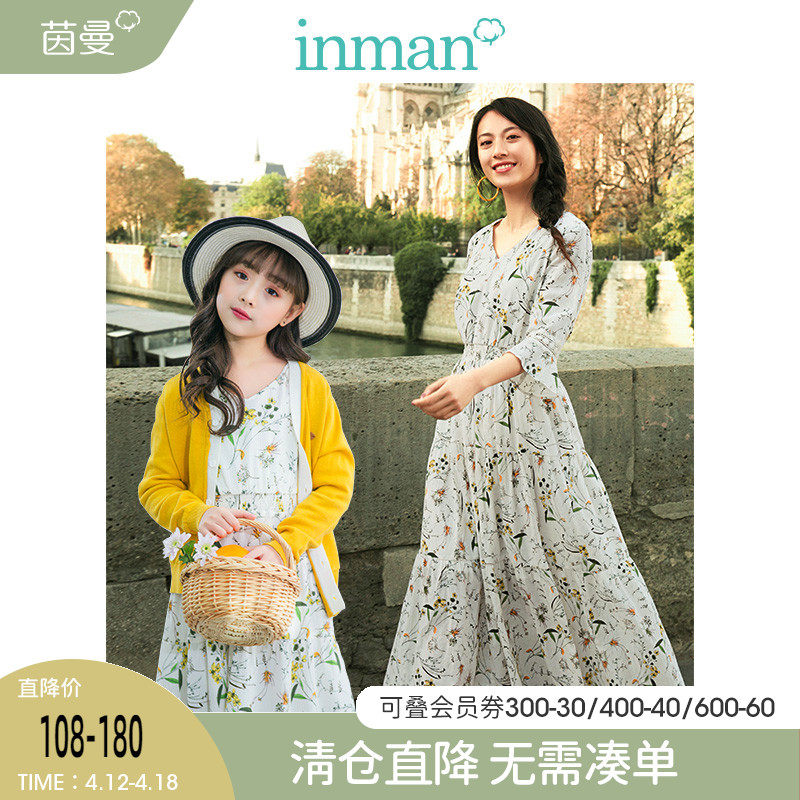 Mainman children dress parent-child girl dress girl foreign dress 2022 spring and summer autumn with broken flowers over knee pure cotton lotus leaf side dress
