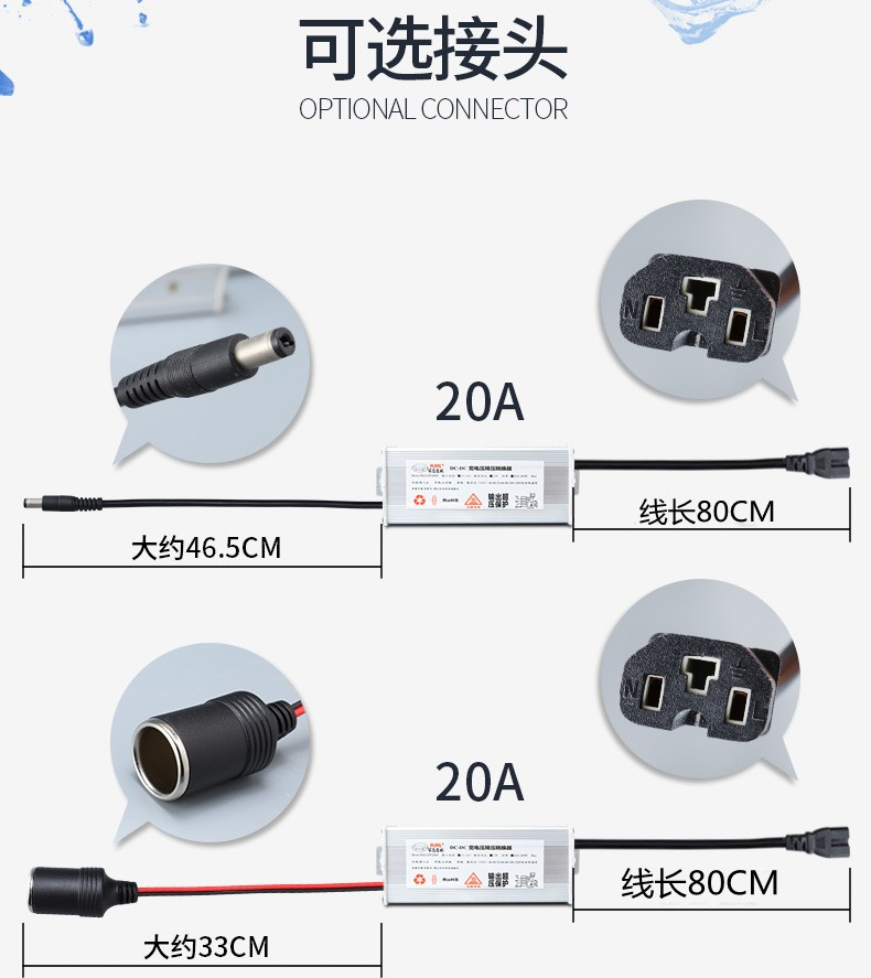 Electric car DC converter 48-96V to 12V10A20A cigarette lighter DC5 5 plug quick connect Universal