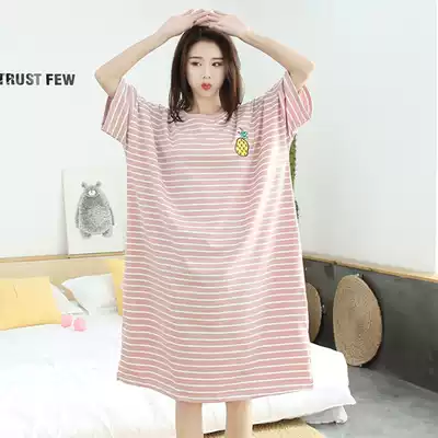 Large size night dress female fat mm200 kg pure cotton short-sleeved long version loose fat sister plus fat plus pajamas summer