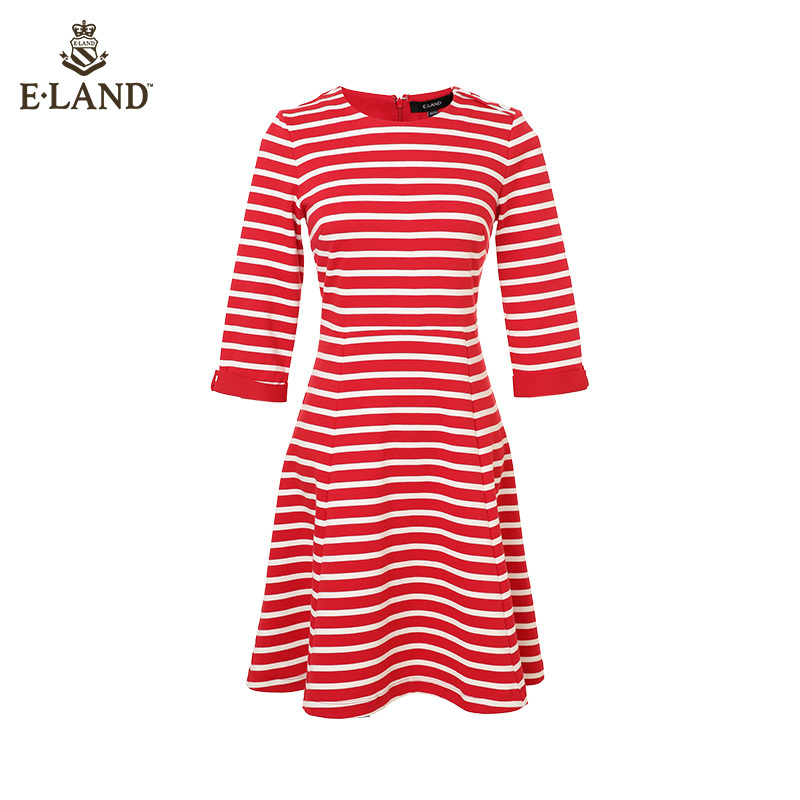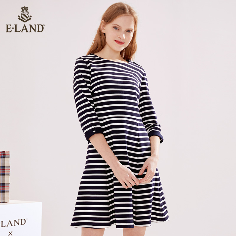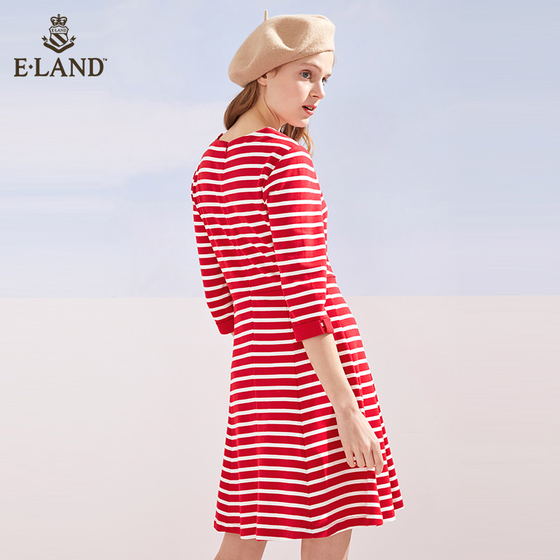 ELAND clothes romance spring summer money sweet and beautiful collection waist display slim striped first love tie knit dress casual foreign dress fairy