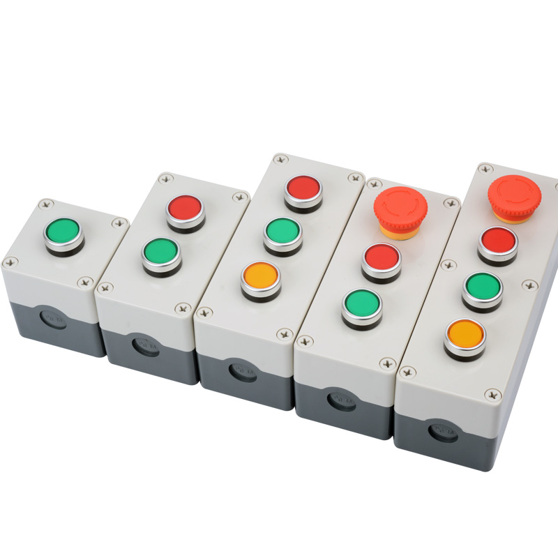 One (with light button) two (with light button) three (with lamp button) three (emergency stop 2 button with light) three (knob with lamp 2 button with light) and four (with light button) four digits (emergency stop 3 buttons)