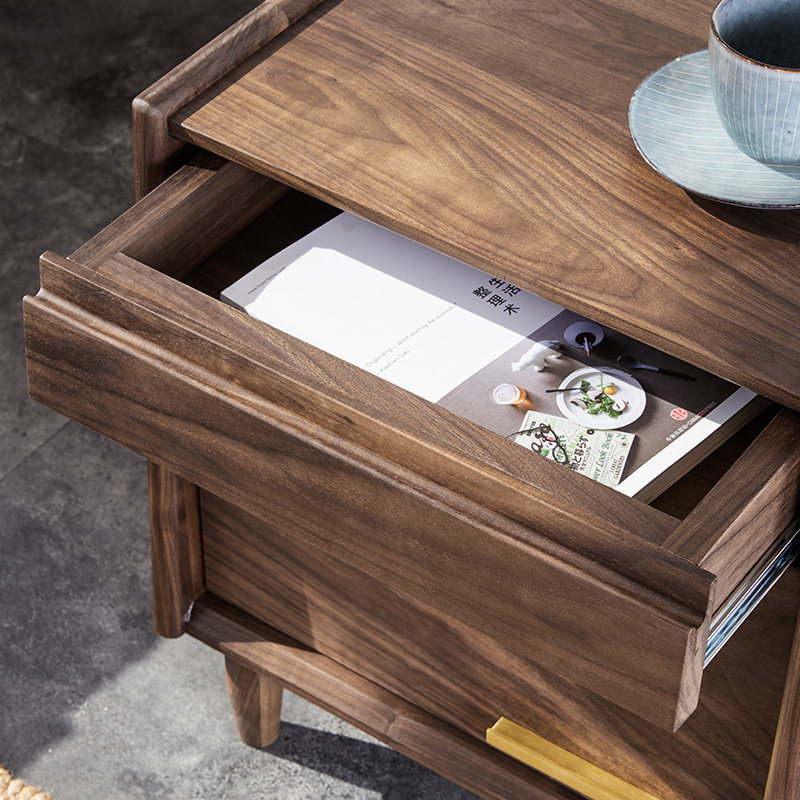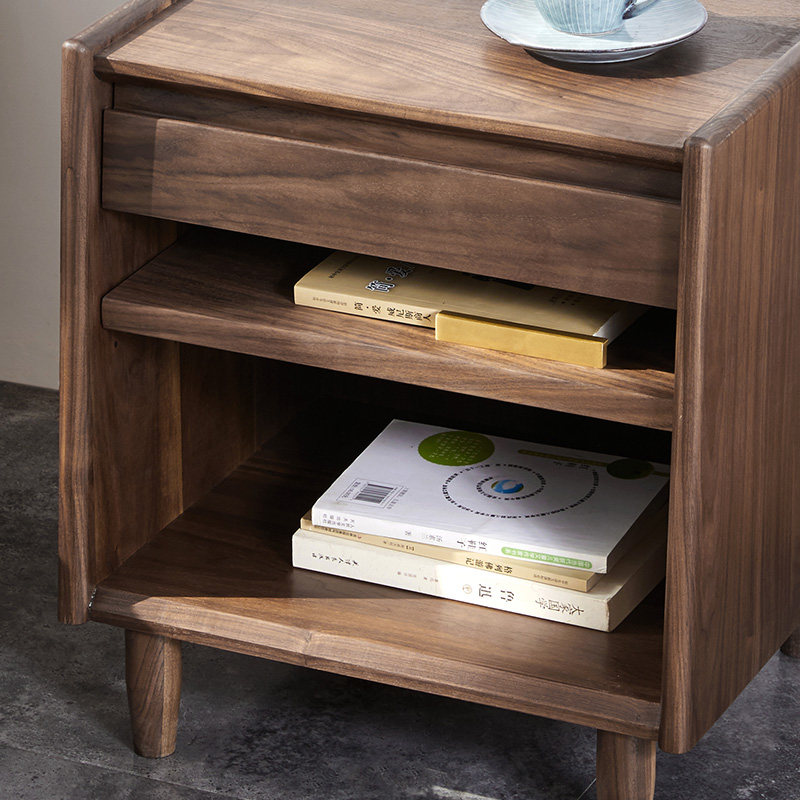 Bedside table black walnut all solid wood simple modern bedroom storage storage decoration very narrow small Nordic furniture