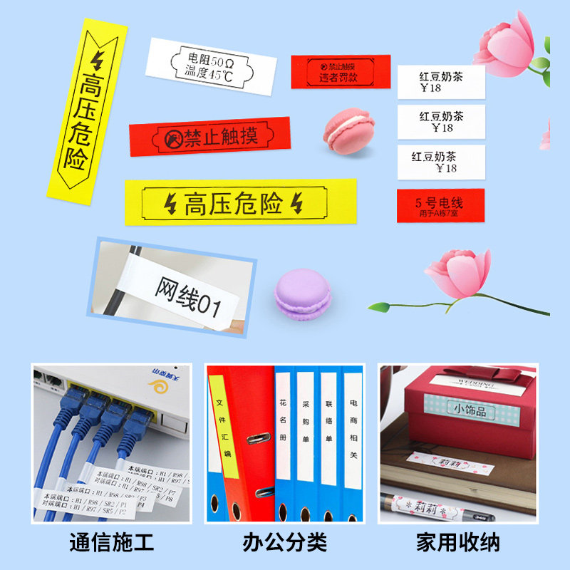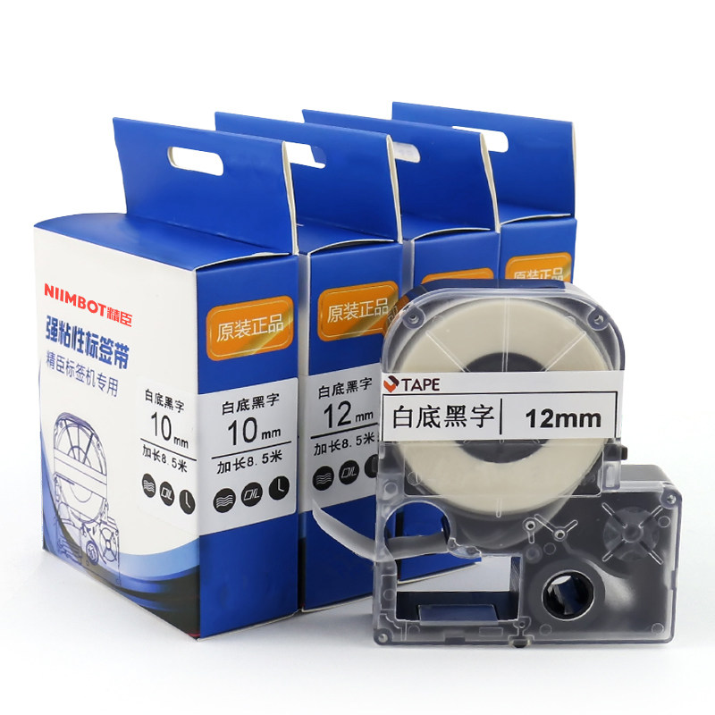 Jingchen JC-114 Label paper label machine ribbon 6 10 12mm label tape Waterproof network cable Label sticker cable Black on white Price label Color label printer ribbon Household