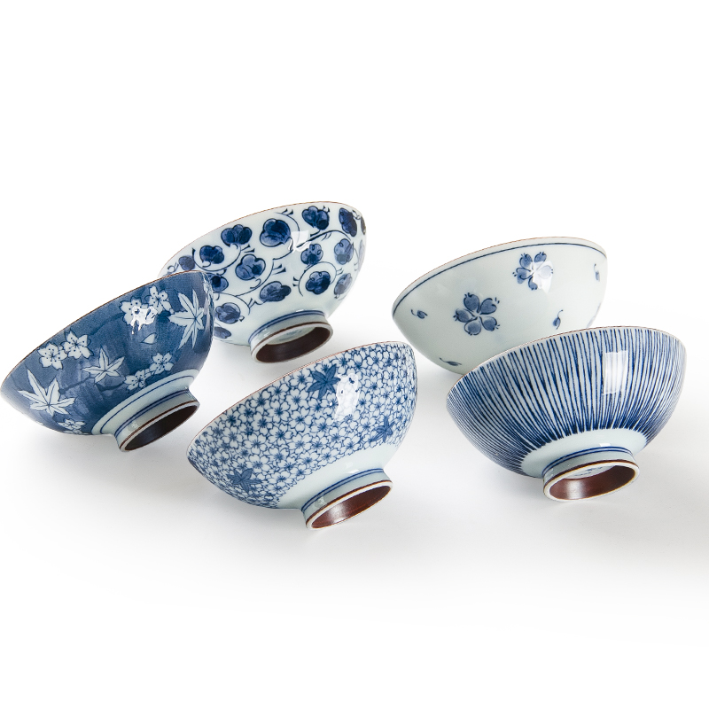 Japan Import Glaze Lower Color Ceramic Bowl Home Green Flower Porcelain Bowl High Foot Bowl with Blister Noodles Bowl Japan Style and Wind tableware 5 clothes