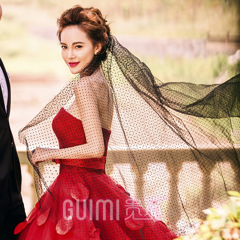 Black wave nodding yarn female photo props Bridal veil super Fairy new Korean forest wedding veil headdress