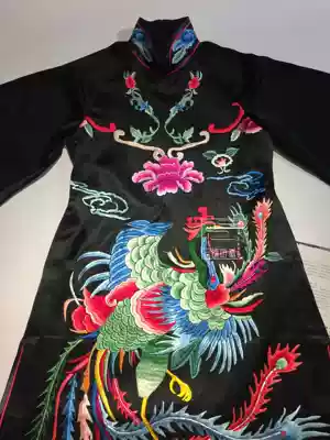 Cloud decoration totem original temperament women's dress ethnic style hand embroidery color phoenix long-sleeved lanky robe