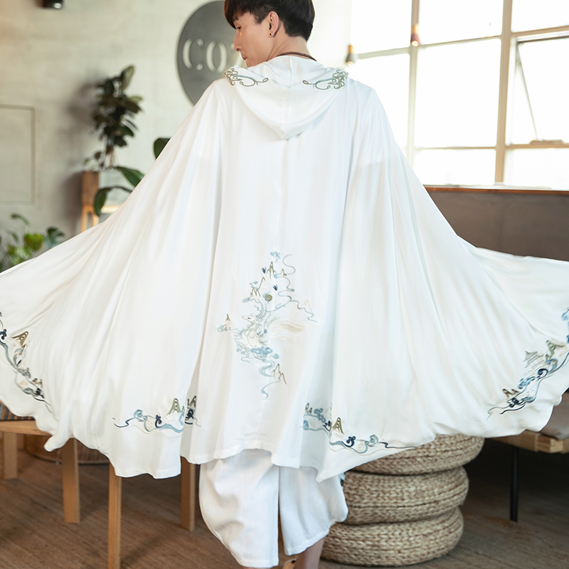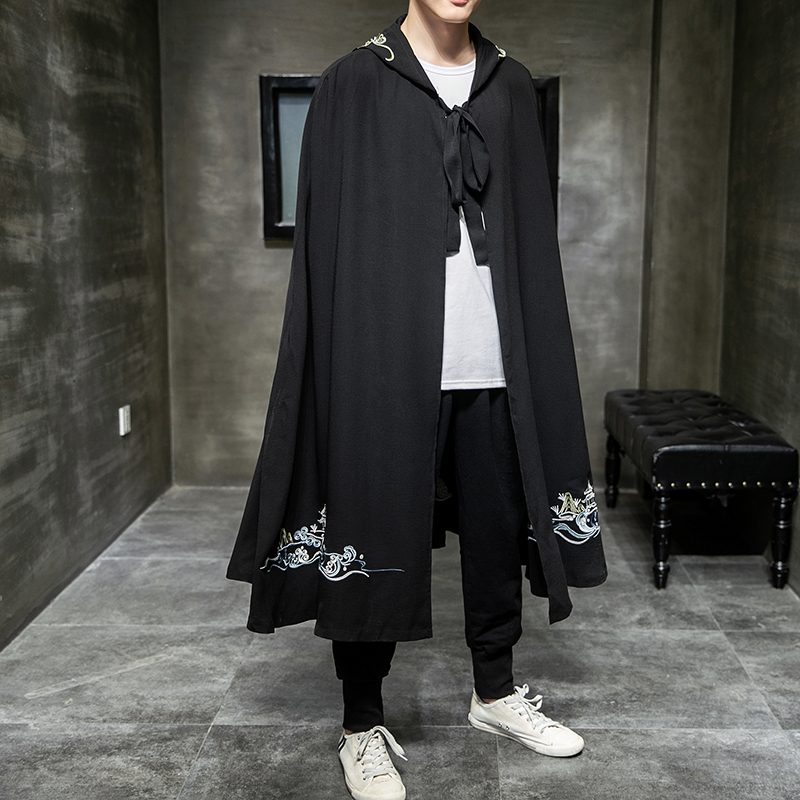 Dao robe Chinese style Tang costume young men loose cotton linen medium long size modified hooded cape hanfu long shirt