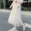 Summer thin mesh skirt chiffon skirt women's 2021 new summer medium and long version a-word fairy dress