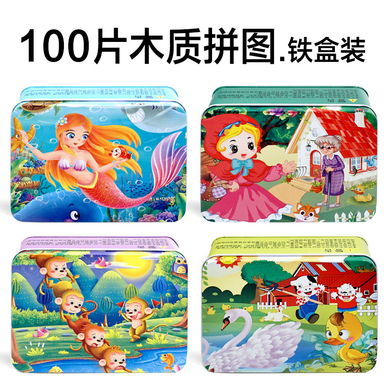 China map puzzle 100 pieces wood world children handmade puzzle toy wooden iron box 5-6-7-8-9 years old