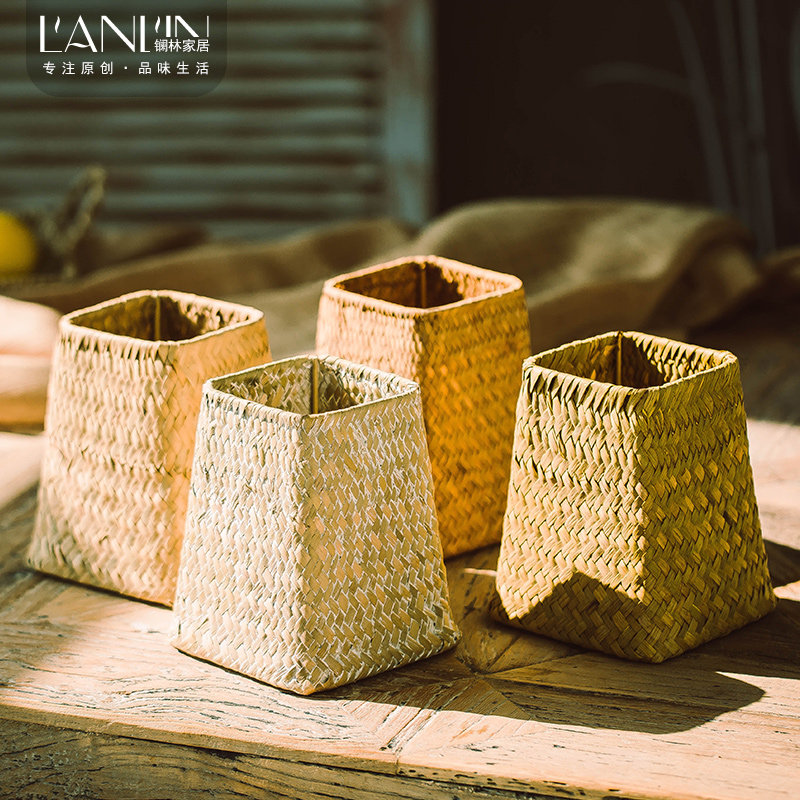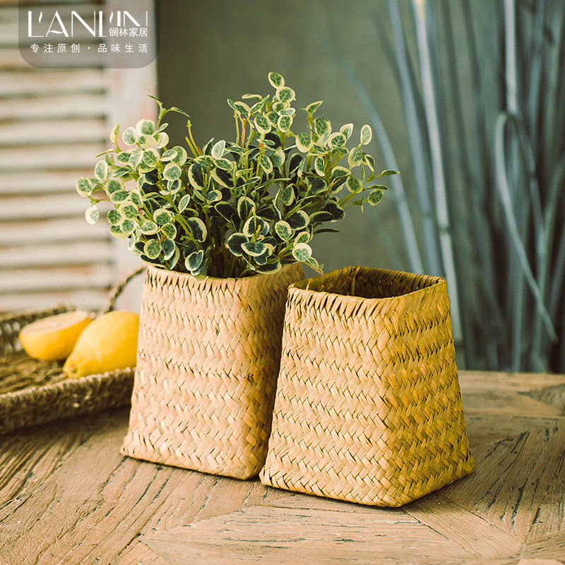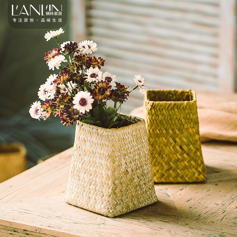 American pastoral hand-woven straw weaving non-rattan woven willow weaving small vase tabletop flower arrangement flower basket dried flowers succulent pot