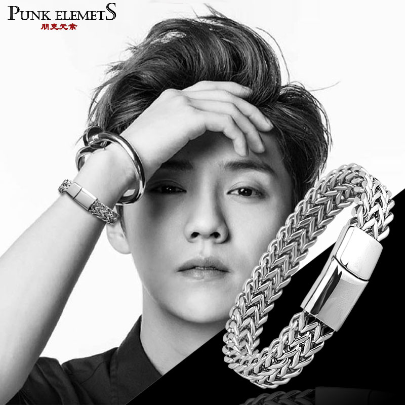 Hip-hop bracelet personality Han bracelet men titanium steel bracelet hegemony widens silver bracelet tide