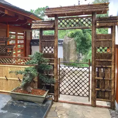 New Chinese bamboo gate building courtyard decoration door bamboo wood gate outdoor fence Villa yard anti-corrosion and durable