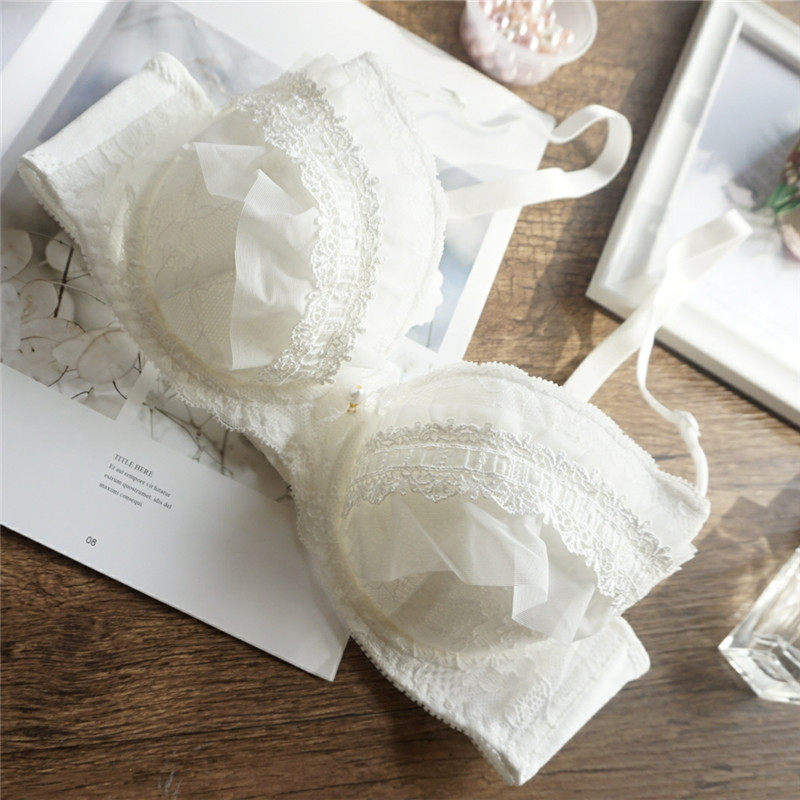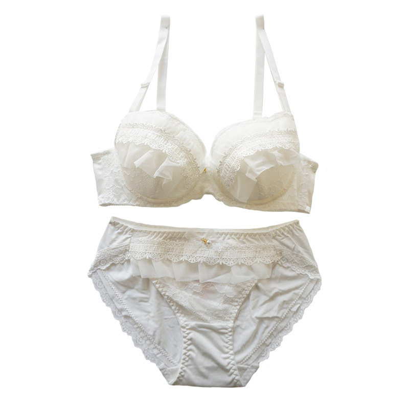 Sweet Time Day Ensemble Sweet Whitening Thin Cups Large Size Cups Poly-up Lace Embroidered Bra Underwear Suit